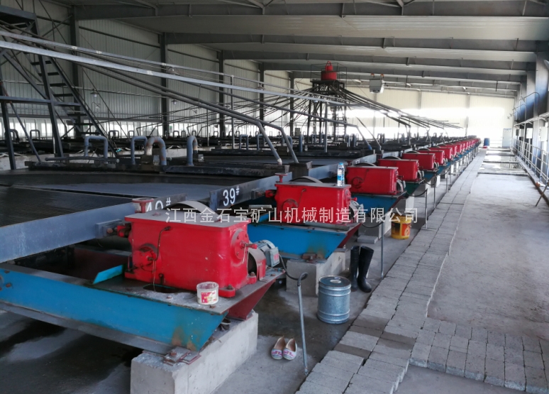 两者主要影响矿粒在横向的运动速度及沫层的松散度。增加坡度可使水流的速度加大,一般处理细粒物料时,坡度宜小些,处理粗粒物料时,坡度宜大些。坡度可在0°~10°范围内调节。对于不同物料的坡度可以采用下列数值作为参考:小于2毫米的粗粒级用3. 5°~4°;小于0. 5毫米的物料用2. 5°~3. 5°;小于0. 1毫米的细粒物料用2°~2.5°;对于矿泥(0.074毫米)采用20左右。应当注意的是,坡度的选择要与水量很好地配合起来。区水流分布均匀,不起波浪,矿砂不成堆,精选区分带明显,带宽而薄,床面无矿区宽度合适。