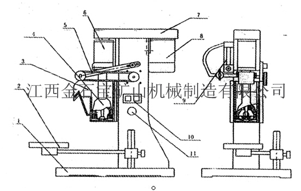 (1) 机座(2)托板(3)槽体(4)搅拌部(5)刮板部分(6)主轴部分(7)护罩(8)电机(9)流量计(10)控制开关(11)刮板开关