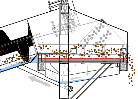 4、洗砂时出现翻花现象故障原因:1)螺旋洗砂机转速过高;2)螺旋盘的水平轴没有固定好。
