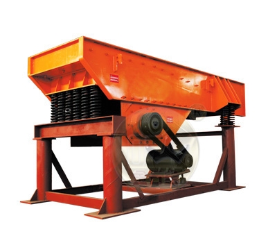 振动给料机主要由振动机架、弹簧、振动器、电机振动架及电机等组成。激振器个是由二特定位置的偏心轴以齿轮相啮合组成,装配时必须使两齿轮按标记相啮合,通过电机驱动,使两偏心轴旋转,从而产生巨大合成的直线激振力,使机体在支承弹簧上作强制振动,物料则以此振动为动力,在料槽上作滑动及抛掷运动,从而使物料前移而达到给料目的。当物料通过槽体上的筛条时,较小的料可通过筛条间隙而落下,可不经过下道的破碎工序,起了筛分的效果,提高了工作效率。